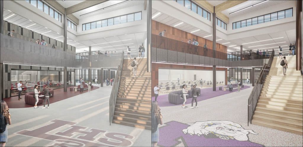 Each new campus is designed to enhance educational spaces for students in grades nine through twelve. The expansion will also deliver a substantial increase in core curriculum classrooms, common areas, extracurricular spaces, and comprehensive sports facilities, serving an academic capacity of 3,800 students with the ability to expand to 4,200.