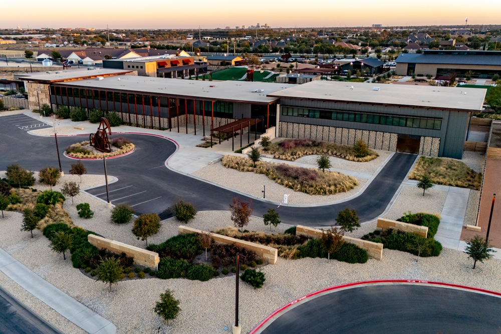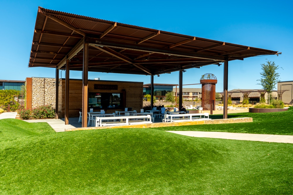 With a four-acre destination park at its heart, the Summit Center mixed-use development is a top-of-the-line amenity, office, retail, and dining complex in Midland, Texas. Providing the community with a new place to gather and enjoy good food, fun, and fellowship. Dunaway’s designers worked alongside Rhotenberry Wellen Architects and Cosee Home to master plan and develop a seven-building facility and headquarters for Summit Petroleum. With parking at the perimeter, the buildings all face a central green space with multiple unique gathering spaces. A central snack shack and restroom facility provides a place for respite as visitors explore a natural play space, high point overlook, event lawn, and rustic firepit grove.