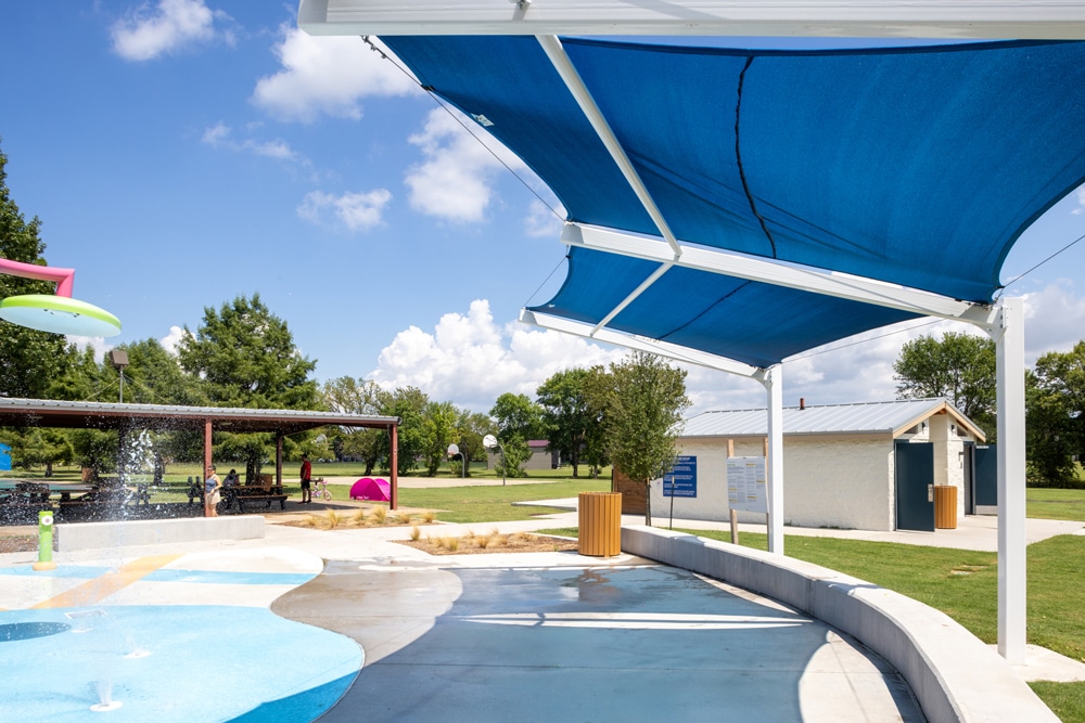 Dunaway partnered with the City of Wylie to design two vibrant spraygrounds – located at Community Park and East Meadow Park – and the city’s first-ever dog park, “Prairie Tails”. Each sprayground was designed with a unique theme that complements its natural surroundings, offering family-friendly water play experiences. Features include modern filtration systems, shaded seating, and newly constructed restroom facilities. Low Impact Development (LID) strategies such as curbless parking and bioswales enhance water quality, while solar lighting reduces energy demand.
