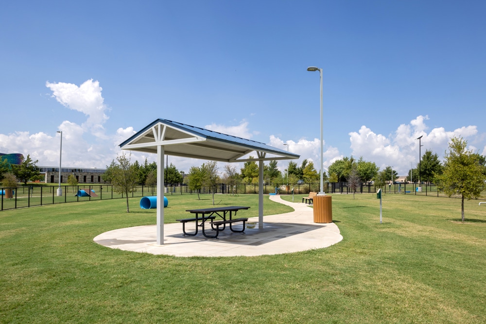 Prairie Tails Dog Park spans three 1-acre paddocks inspired by the modern prairie aesthetic of the municipal complex. Each paddock includes shade structures, seating, agility equipment, drinking fountains, and a dog wash station – creating a safe and stimulating environment for dogs and their owners to play, train, and relax.Dunaway’s landscape architecture team worked closely with city stakeholders to deliver thoughtfully designed spaces that balance recreation, sustainability, and community identity.